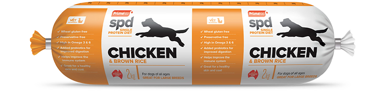 Super premium rolls for all growth stages from puppies to seniors. Our Prime100 Single Protein Diet ™ rolls (SPD rolls) offer a single source of protein which can assist with food sensitivities and other indications.